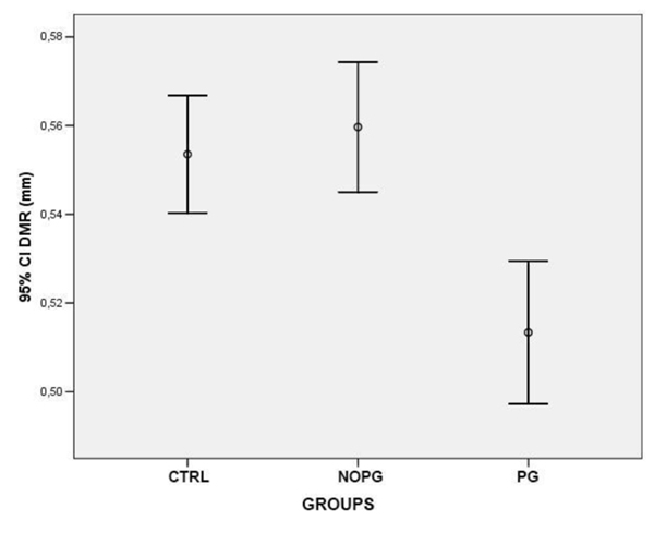 The present data indicate that PG treatment induced DMR thickness reduction and an increase in SMR thickness. These changes were not related to the duration of PG exposure.